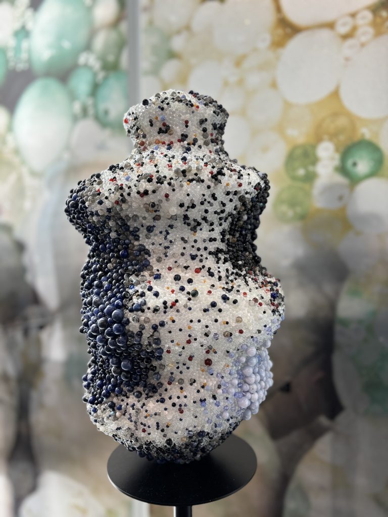 Ultima secțiune, Lesage. 100 Years of Fashion and Decoration, este o veritabilă incursiune în istoria broderiei. Casa Lesage, fondată în 1924 și devenită parte din Métiers d’art, marchează un secol de existență. În această sală, piesele istorice alternează cu lucrări recente, arătând cum broderia, departe de a fi o relicvă a trecutului, rămâne un limbaj viu, în continuă reinventare.